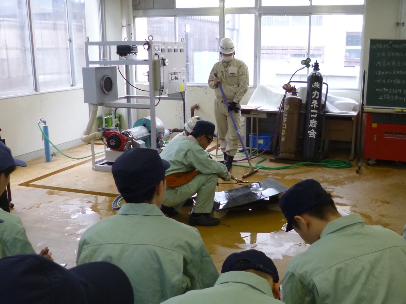常石三保造船新潟工場は、3月13日(金)、新潟県立新発田南高校にて、機械工学科2年生40名を対象に、撓鉄(ぎょうてつ:鋼板を曲げる加工技術)に関する体験授業を実施しました。