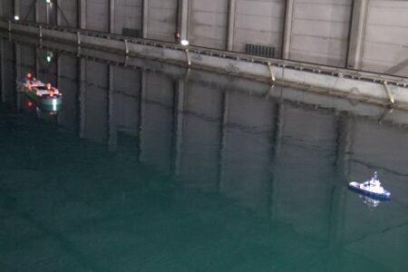 FPSO をはじめ、洋上風力発電用浮体、SEP 船等の非自航作業船、また、ケーソン等の浮体構造物は、タグ等により目的地まで曳航する必要があります。弊社では、安全性検討に必要なシミュレーション技術および水槽試験技術を保有しております。曳航に関わる諸問題に対して私達の技術をご提供いたします。