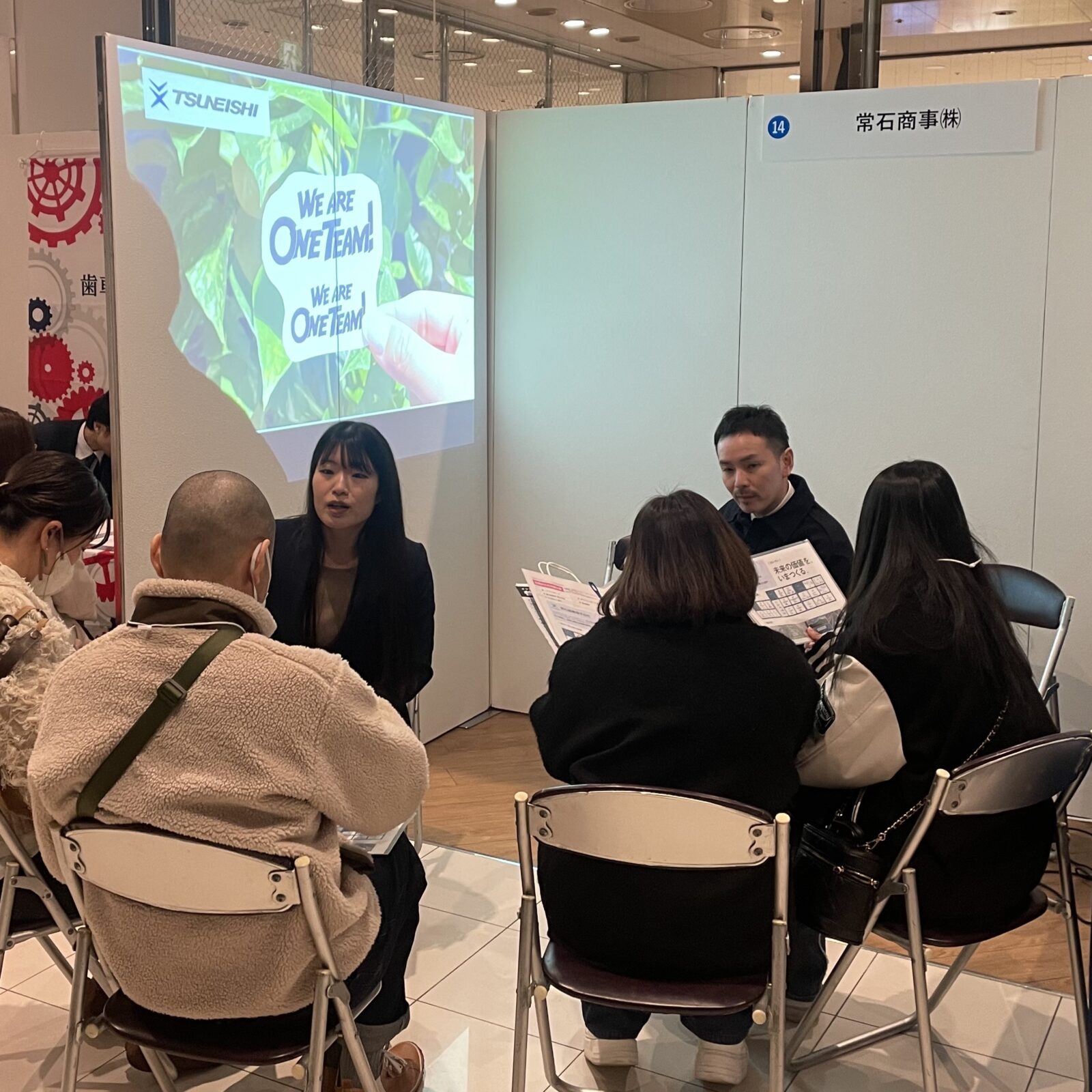 We participated in activities to recruit new graduates, including company introductions, with the aim of raising awareness of the company as a local company. Approximately 20 pairs of parents and children (28 people) visited the booth and engaged in a lively exchange of opinions.