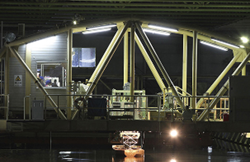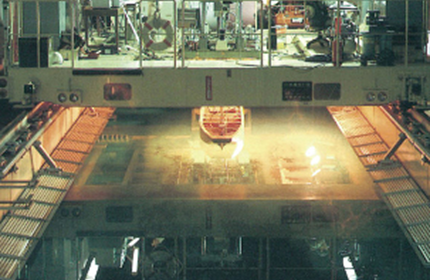 主として船舶・海洋機器の波浪中運動性能及び操縦性能試験やプロペラ関係の試験に使用します。