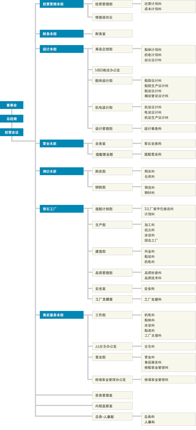 新闻中心 新闻一览 常石新闻 新闻动态 产品信息 产品信息 TOP WIDE KAMSARMAX KAMSARMAX TESS66 AEROLINE TESS64 AEROLINE TESS42 LRI Product Oil/Chemical Tanker 1,091TEU Type Container Carrier 2,806TEU Type Container Carrier (Gearless) 2,806TEU Type Container Carrier (Geared) 1,944TEU Type Container Carrier Cruise Ship 售后服务 技术信息 技术信息 TOP 新型造船的崭新技术 修缮服務 公司信息 公司信息 TOP 社长致辞 公司简介 企业理念 董事会成员 组织结构图 沿革 - 公司标志的由来 生产基地一览 交通图 人才招聘 人才招聘 TOP 招聘应届毕业生(JP) 招聘经验者(JP) 我们的可持续性 我们的可持续性 领导致辞 全球环境保护的匠心之作 与地区和社会共发展 关注工作幸福感 在开发和技术领域的贡献 咨询 关于隐私权政策 网站导航 TOP公司信息组织结构图 组织结构图 回到公司信息一览
