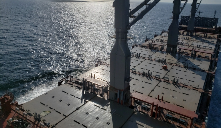 - 装有3台甲板吊机,可在许多港口装卸货物。