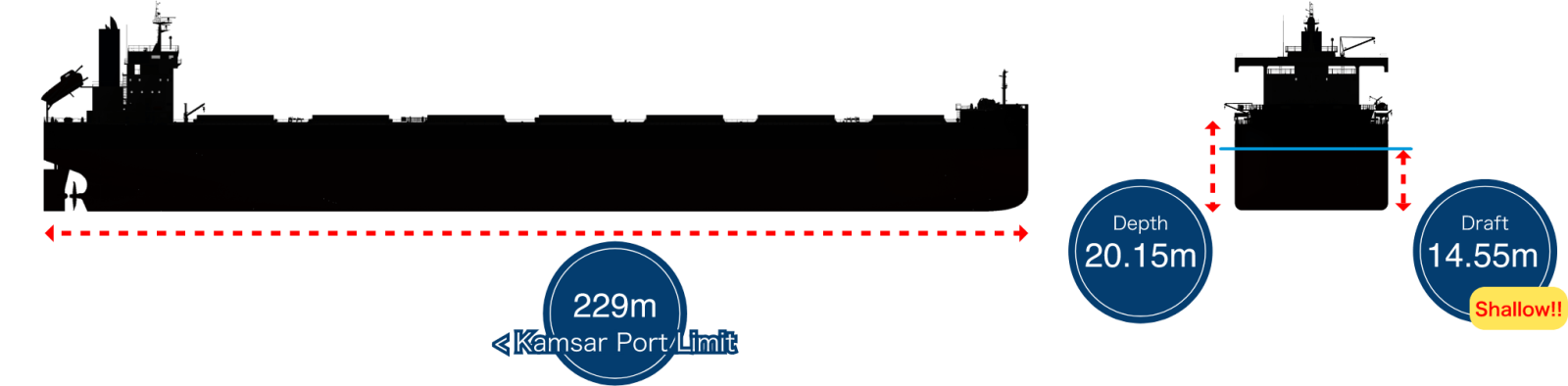 - 净载重量超过82,000 MT的同级船型里浅吃水最小。