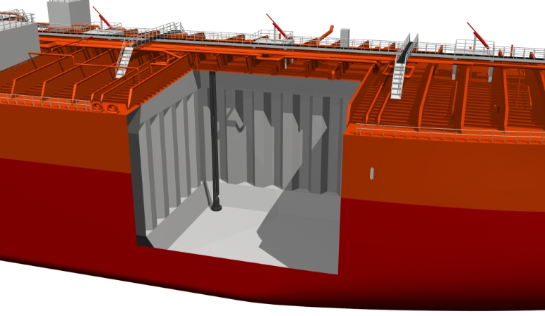 船宽为38m,通过让型深变小・吃水变浅,实现了与MR型同等的净空高度和歧管高度等。