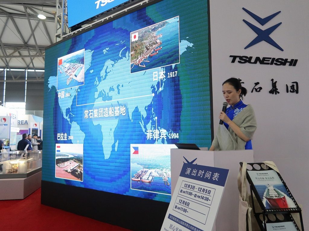 常石集团(舟山)造船有限公司(所在地:中国浙江省舟山市岱山县秀山乡;总经理:佐藤二郎;以下简称:TZS)参加了在上海新国际博览中心(Shanghai New International Expo Center)召开的国际海事展览会“MARINTEC CHINA 2019”(2019年12月3日(周二)~6日(周五)为期4天)。继2015年、2017年之后,在本次展会上也搭建了展台,充分展示了一直以来取得稳定成长的业绩以及飞跃提升的建造能力等本公司的诸多优势。