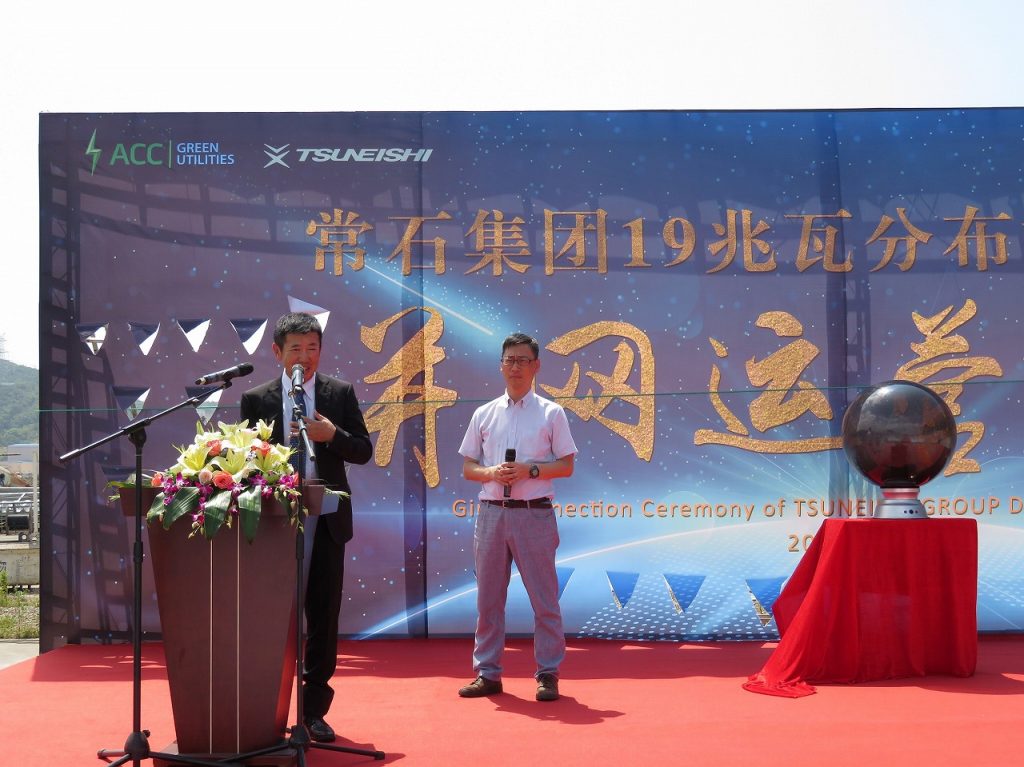 8月3日,该电站的并网运营仪式在常石舟山工厂隆重举行。总经理奥村幸生在致辞中说:“这项大规模光伏电站项目,使用了1年时间顺利竣工,我感到非常高兴。在日本拥有百年历史的常石集团一直以造船为事业核心,集团海外基地之一的常石舟山工厂,以可持续发展为目标,面向未来一百年的发展将继续作出不懈的努力。要实现这个目标离不开当地政府、居民及各合作方的支持。我们将秉承常石集团DNA中一贯坚持的‘与地区社会共同发展’的精神,以保护环境为己任,通过本公司的持续发展为地区作出更大的贡献。”