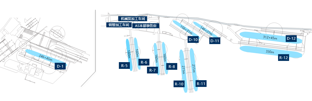 | D-11 | 150×31.0×3.8 | 146×27 | 9.0 | 1/200 | 25T×16m (可与D-10船台并用) 20T×18m |