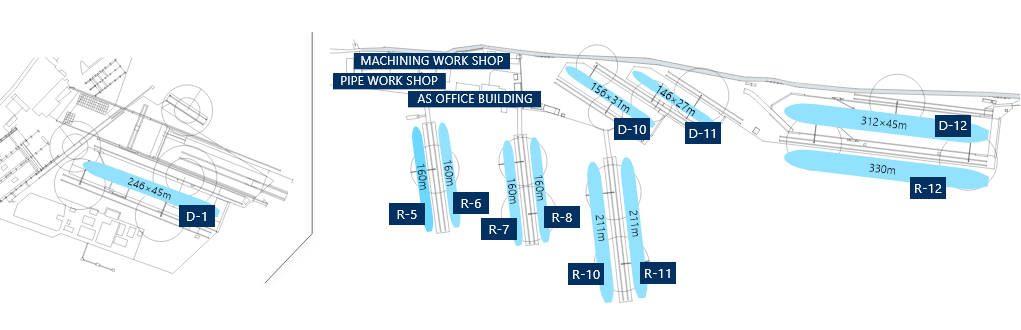 We have 4 dry docks and 7 wharves. Our main dry dock, one of the leading facilities in Japan, can accommodate vessels up to 200,000-DWT.