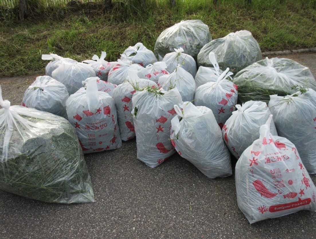 この活動は、海洋ごみの問題解決への貢献を目的としています。海洋ごみの約8割は、陸(街)から川を伝って海に流れ出したものです。海洋ごみを減らすためには市街地でも清掃活動を行うことが重要です。本社新潟工場での清掃では85名が参加し、61袋のごみを回収しました。