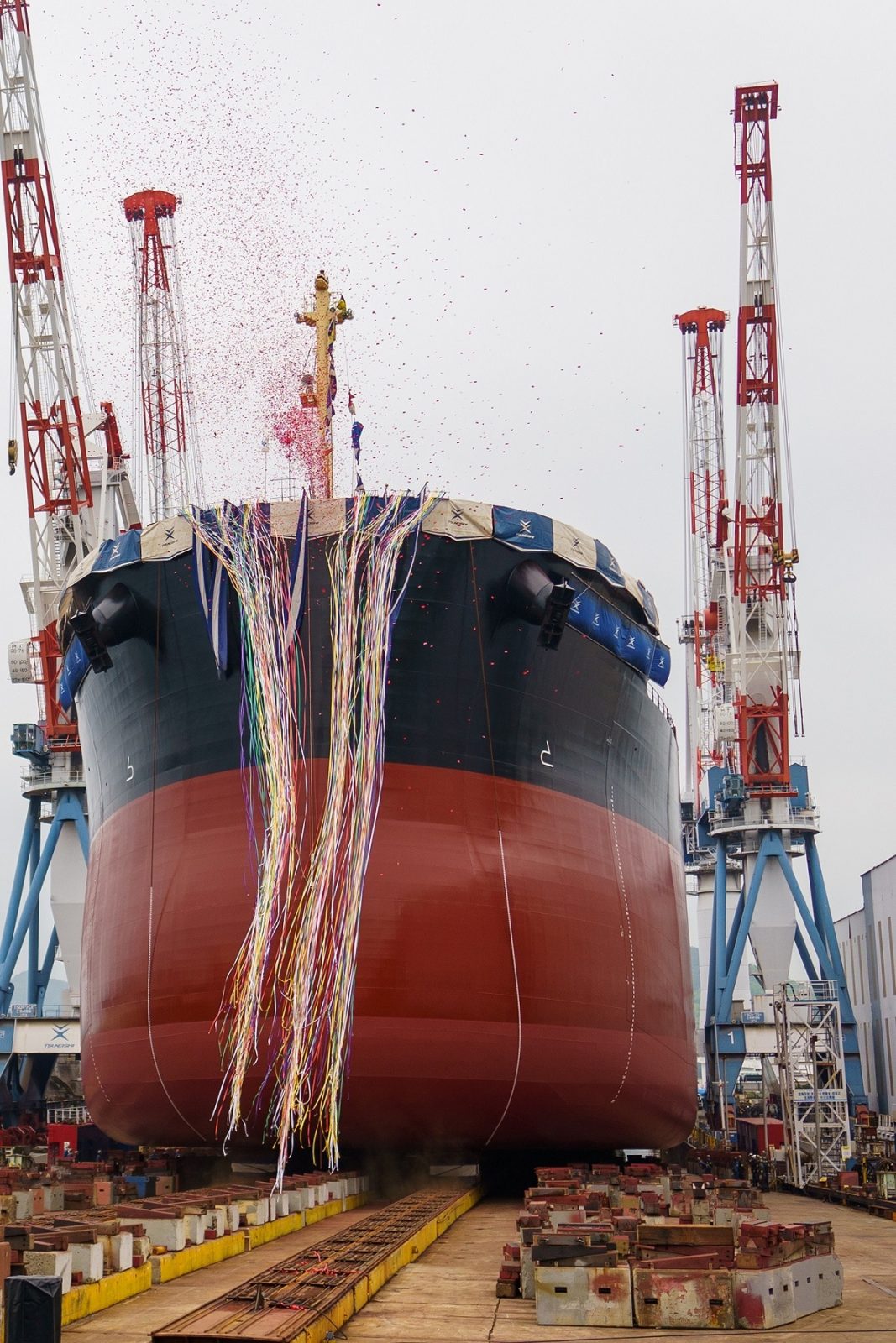 常石造船 8万2千4百トン級ばら積み貨物船の進水式を一般公開しました