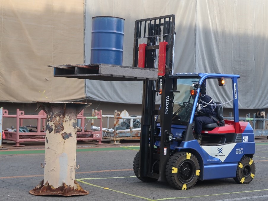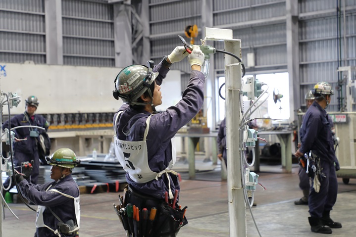 大会には約100人が参加し、「H鋼切断」、「小組部材溶接」、「CO2溶接」、「梯子刷毛塗」、「配線結線」、「天井クレーン運転」、「電動フォークリフト運転※」の7種目が行われました。