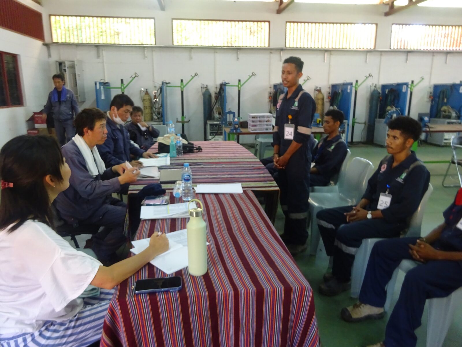 今回の受入れに当たり、2024年4月に現地で実技試験および選考会を実施しました。選考候補者の平均年齢は20代前半と若く、選考会時の面接では「日本へ実習生として行くことで、両親や兄妹のために頑張りたい」「日本で学んだことを東ティモールへ持ち帰り、祖国の発展に貢献したい」と、非常に真剣に取り組んでいた姿が印象的でした。常石造船として初めての国からの受入れということで、現地設計会社であるTSUNEISHI TIMOR SHIPBUILDING, UNIPESSOAL, LDA.(TTS)からのサポートを受けながら、無事に実習開始することができました。