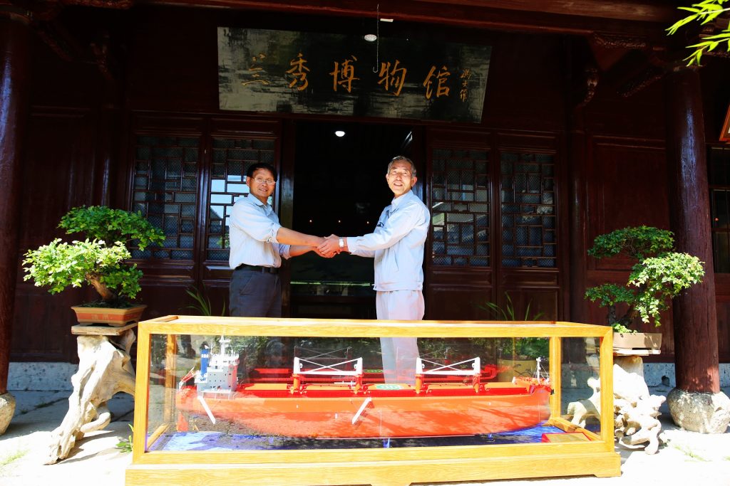 The model ship was donated by requesting from the museum to display a 58,000-ton bulk carrier, the main ship being built at TSUNEISHI GROUP (ZHOUSHAN) SHIPBUILDING which is known as one of the most notable shipbuilding factories in Zhejiang Province, so that the local residents would have an opportunity to learn about the development of shipbuilding and shipping in this province. This contribution to the museum was made as part of the company’s ongoing CSR activities. TSUNEISHI GROUP (ZHOUSHAN) SHIPBUILDING will continue to build friendly relationships with the local residents and help contribute towards the further development of the local communities.