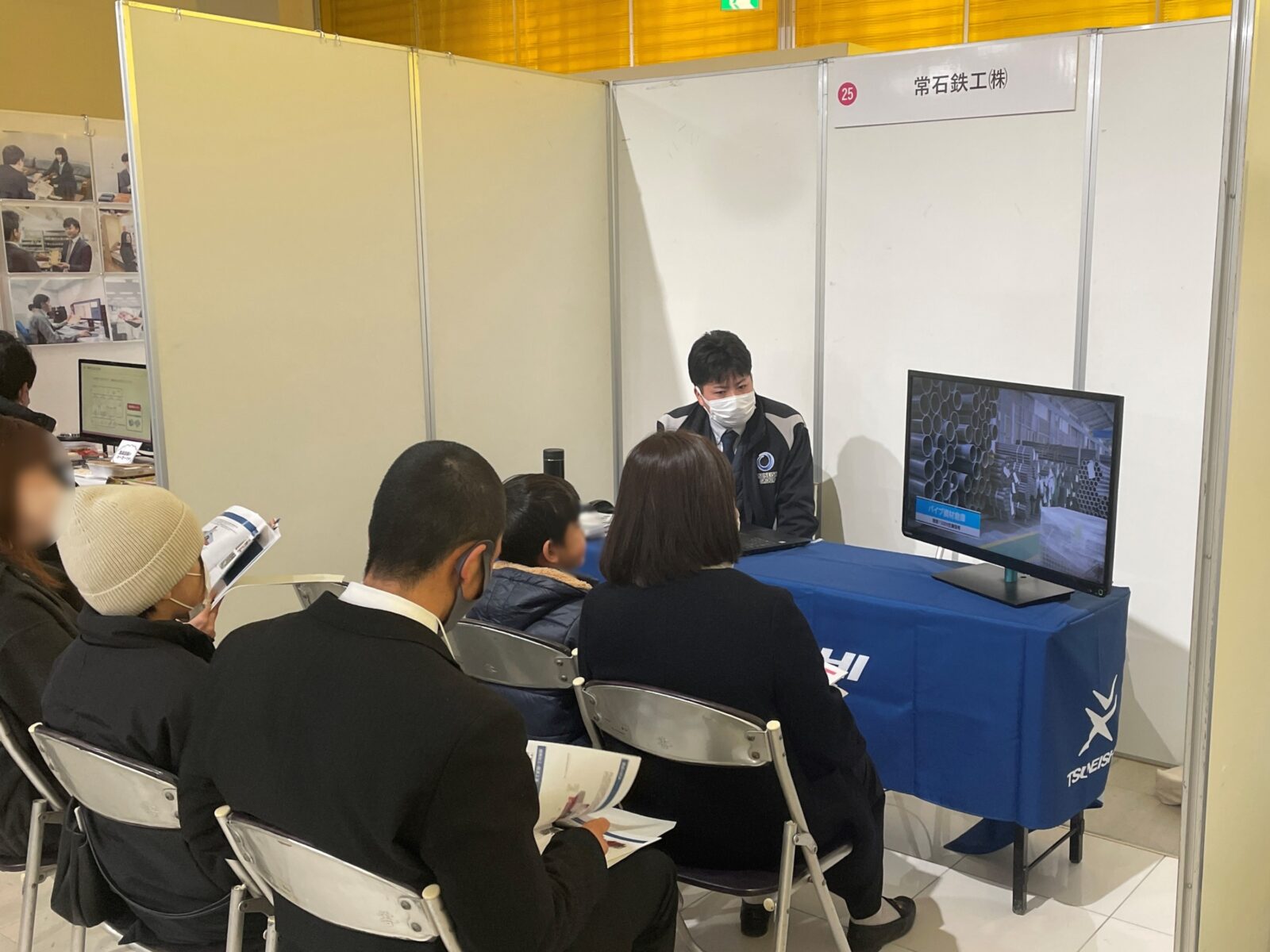 On February 24, TSUNEISHI SHIPBUILDING, TSUNEISHI IRON WORKS and TSUNEISHI CORPORATION collectively known as TSUNEISHI Group, participated in the “OYAKAKU” recruitment event hosted by the Chugoku Shimbun at iti SETOUCHI in Fukuyama City. The event was a corporate guidance session for parents of high school students. The event saw the participation of 33 companies from the Bingo region, along with 356 students and parents. This provided a valuable opportunity for direct interaction with the companies, allowing for insights into their respective attractiveness and working environments.